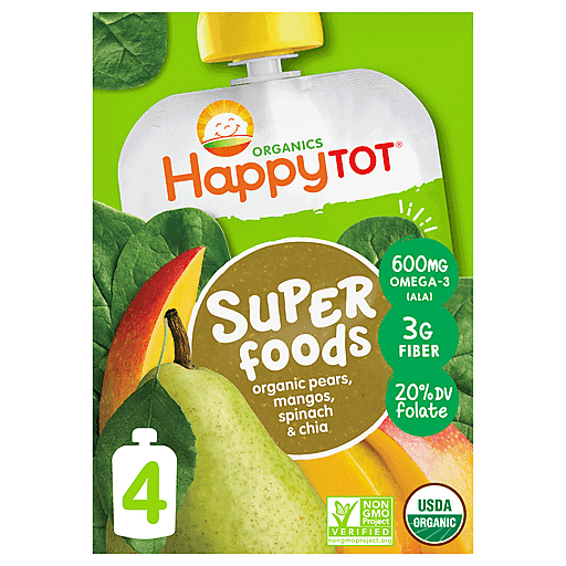 Happy Tot Mangos & Spinach + Chia Toddler Fruit & Veggie Blend 4 (Tots & Tykes) Super Foods Organic Pears 4 ea