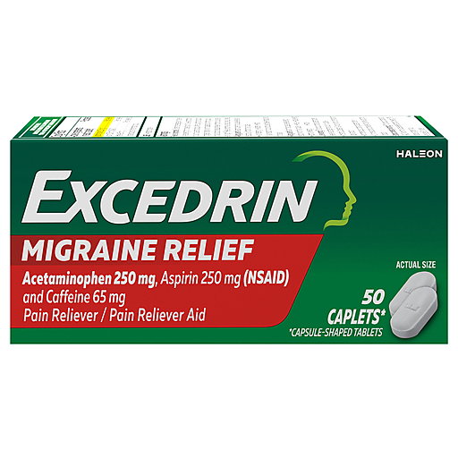 Excedrin Migraine Relief Caplets work fast for migraine pain relief, making Excedrin Migraine the #1 neurologist recommended OTC treatment for migraines.* Available in convenient caplet form, this powerful migraine medicine delivers a specialized triple action formula containing two pain fighters and an amplifier. These Excedrin caplets combine aspirin and acetaminophen with caffeine to provide migraine relief, including migraine headache pain, sensitivity to light and sound, and nausea. For some, this migraine headache relief medicine starts relieving migraine pain in 30 minutes.*Among OTC medicine for migraines IQVIA, Inc., 2018